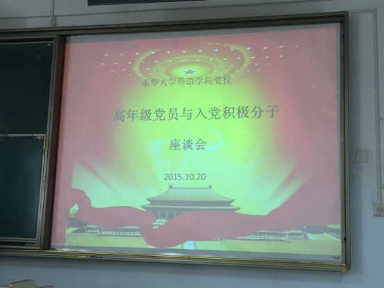 1 10月22日,太阳成tyc122cc高年级员工党员与第68期党校入党积极分子座谈会在松江校区第一教学楼1105教室顺利举行,会议由入党积极分子培训班成员张丽华主持,为时两小时,内容丰富又充满意义,与会双方都表示收获颇丰。