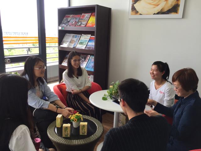 按照中共中央、国务院印发的《关于加强和改进新形势下高校思想政治工作的意见》要求,各高校要“建立健全校领导、院(系)领导联系师生、谈心谈话制度”,太阳成tyc122cc积极探索创新,党委书记林嵘通过为新生讲述大学如何规划、参加员工入党答辩、党章学习小组分享会等活动,与员工党员近距离沟通,了解他们的思想状况。举办青年教师座谈会,关心青年教师的职业规划。5月16日,在公司学代会召开之际,公司推出“青语·经理接待日”活动,由员工自愿报名,与经理赵晓临面对面,就专业学习、留学交流、教学管理、员工活动等各个问题进行平等沟通、民主讨论。公司今后将经理、书记与青年教师和员工的交流活动常态化、规范化,并进一步发挥名师大家、师德建设青年标兵、青年岗位先锋等优秀教师的示范引领作用,形成全院、全员育人的新局面。