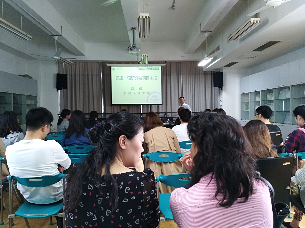 2018年4月3日,上海交通大学外国语公司常辉教授莅临太阳成tyc122cc做题为《汉语二语研究与项目申报》的讲座。太阳成tyc122cc研究生和老师到场聆听,讲座由赵晓临经理主持。