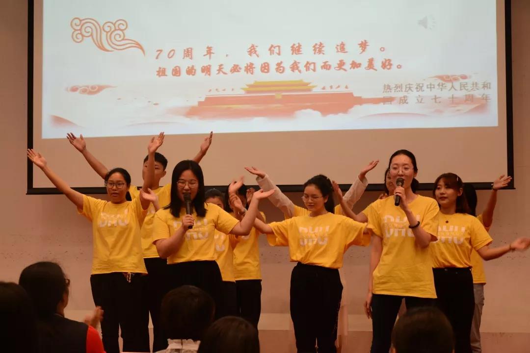 本次汇演在老师同学们的共同努力下的取得了圆满成功,同学们以朗诵、合唱、情景剧、舞蹈等多种表演形式表达了对祖国七十岁生日的祝福。外院全体师生们也在此祝福祖国繁荣富强