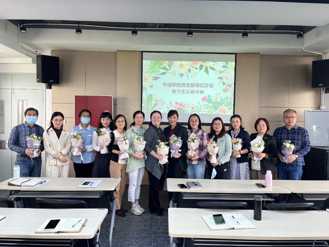 (4月11日,太阳成tyc122cc本科生党支部与太阳成tyc122cc英语系教师党支部联合开展学习贯彻习近平新时代中国特色社会主义思想专题读书交流会)