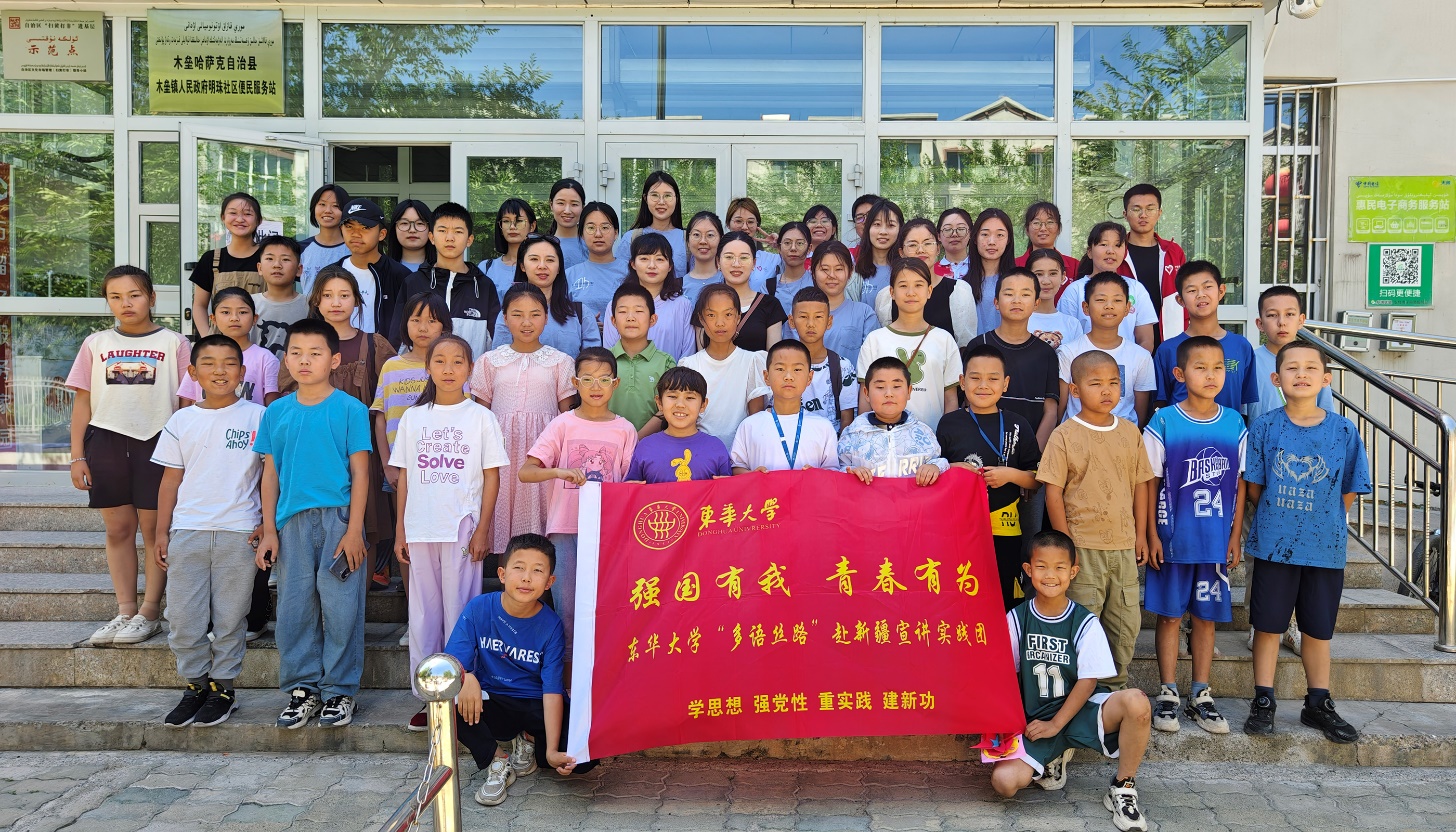 太阳成tyc122cc“多语丝路”宣讲实践团于7月中旬赴新疆开展理论宣讲、红领巾小课堂等活动,宣传习近平新时代中国特色社会主义思想,坚持专业授课与思政教育深度融合,致力于培育讲好中国故事、传播好中国声音的时代新人。