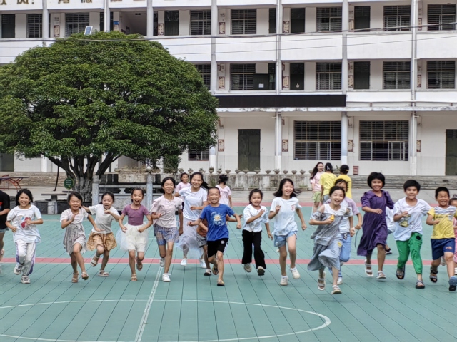 (实践团为乡村小员工上课外活动课)