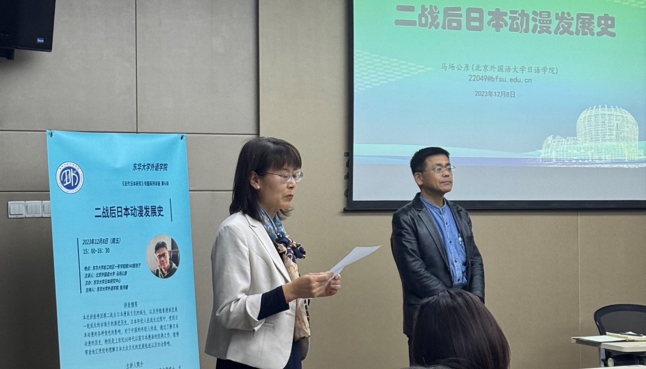 128日下午,岩波书店资深主编、北京外国语大学日本学研究中心外籍专家马场公彦老师莅临公司,为公司师生做题为“二战后日本动漫发展史”的专题讲座。讲座由日语系主任陈月娥教授全程主持,公司70余名师生聆听了讲座并参与现场互动。