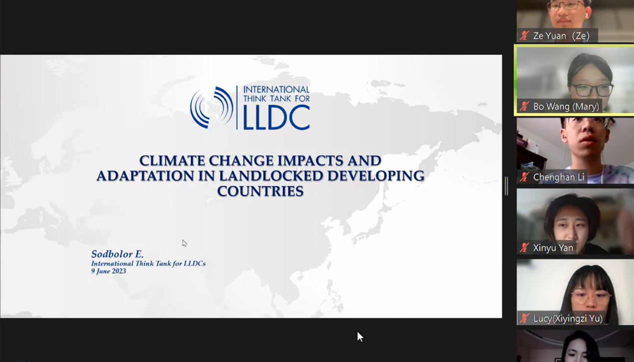 “内陆发展中国家国际智库(ITTLLDC)是内陆发展中国家第一个政府间组织。这段实习经历让我深入了解了32个内陆发展中国家面临的挑战”,刚完成国际组织实习的2023硕党支部书记、班长王博表示,“‘为最不发达国家创造一个繁荣的未来’,这不仅是中国支持内陆发展中国家的主张,更是我们年轻一代肩负的时代使命。”