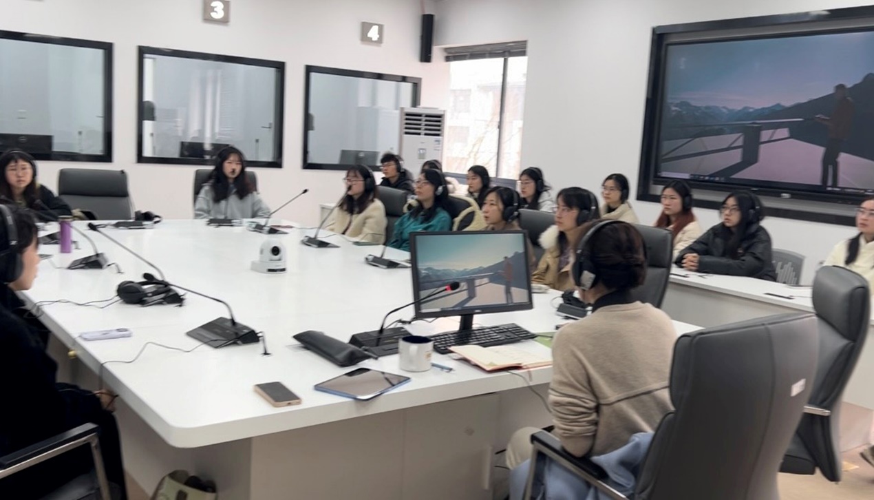 进入同传实验室对于首次接触口译的我而言是极具专业性的初体验。专业设备提供了巨大的帮助和支持,通过耳机设备,我能够实时接收演讲者的讲话内容,然后传送给听众。这种实时性和精确度要求我保持高度的专注和快速的反应能力。同传实验室以及有趣味的课程也让我更深入了解了同声传译的专业性和挑战性,并逐渐训练出组块记忆和顺句驱动等技巧。实验室促使我更加努力学习,提高实战能力,以适应这种高强度的工作环境。